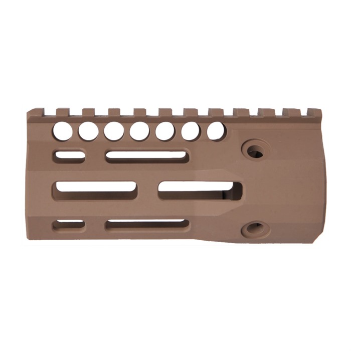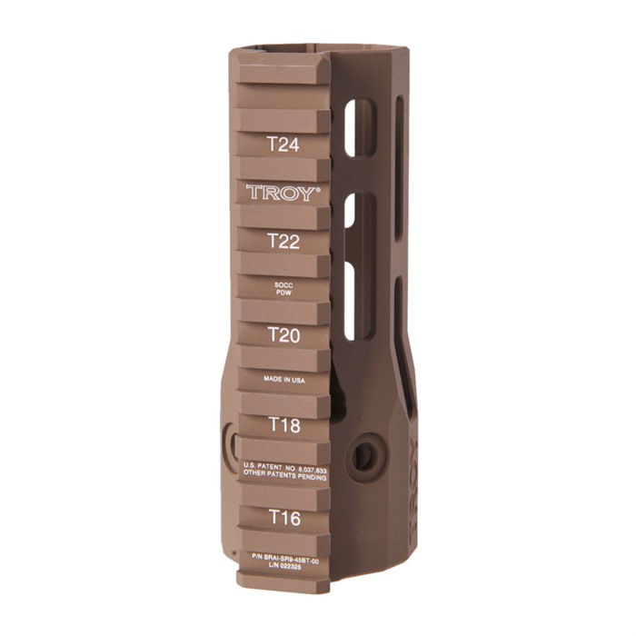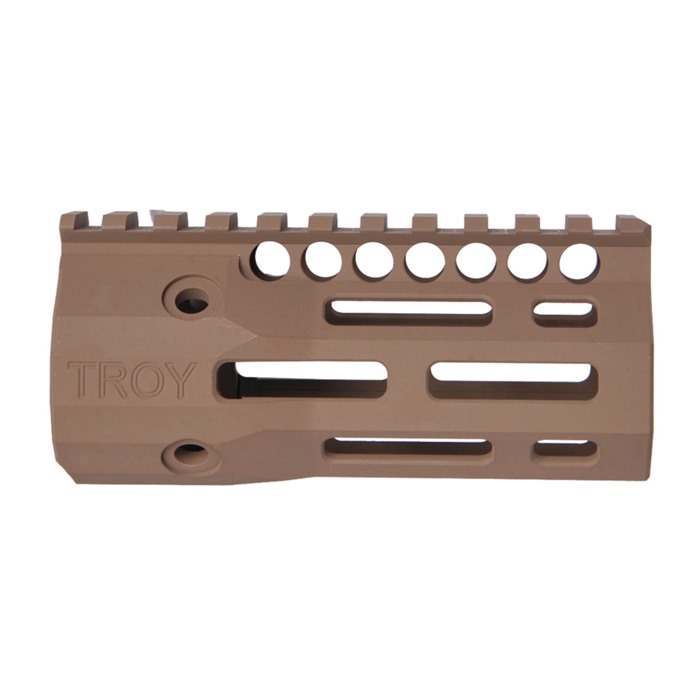 Troy's BattleRails with M-LOK® cooling holes are narrow, sleek and provide exceptional balance and controllability. Lightweight with an ultra-low profile, snag-free design, they are ideal for close quarters maneuverability. Machined from hardened aircraft aluminum with stainless steel components and finished in Mil-Spec hardcoat anodizing, they mount to a standard barrel nut.