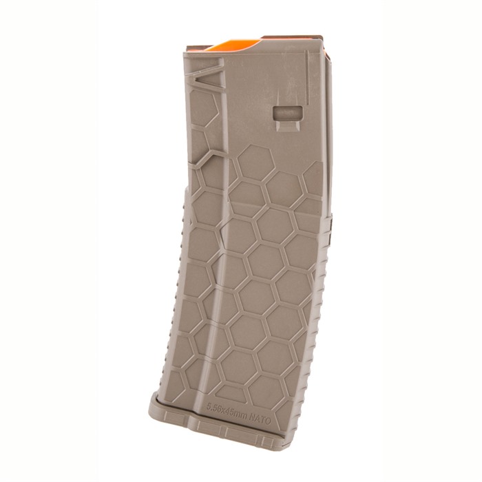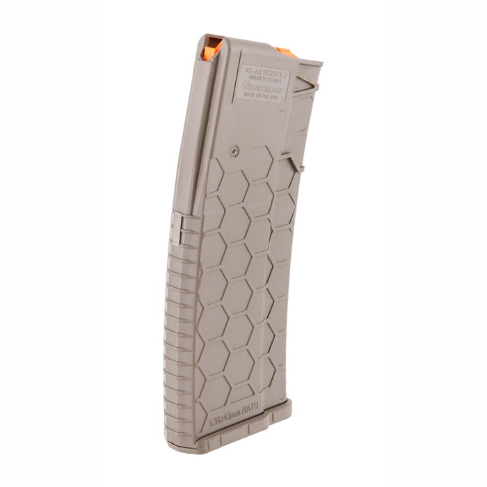 Il caricatore viene fornito assemblato con un follower arancione Hexmag e una piastra di bloccaggio, ed è compatibile con HexID. I caricatori Hexmag presentano una presa superiore grazie a un motivo esagonale rialzato brevettato e un corpo in polimero resistente agli urti. Inoltre, i caricatori Hexmag offrono uno dei pochi design realmente senza attrezzi per smontare il caricatore per la pulizia o per installare l'HexID.