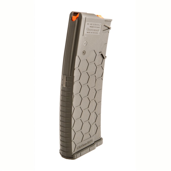 The all new Hexmag Series 2 AR-15 magazine. The 30 round magazine is used by everyone from the AR-15 enthusiast to Law Enforcement and Special Military Units. Series 2 Hexmag magazines are made to be the most durable and diverse AR-15 magazine in the market today. New features in these magazines are; stripper clip guides for easier loading and a lead in ramp above the catch pocket for increased stability in the weapon. The magazines are made from Hexmag’s proprietary polymer that is ultra-durable even in the harshest of conditions. Hexmag magazines are made in the USA and come with Hexmag’s Lifetime Warranty. Hexmag magazines feature a superior grip with a patented raised hexagonal pattern and impact resistant polymer body. Hexmag magazines feature one of the industry’s only true tool-less designs for disassembling the magazine for cleaning or installing the HexID. The anti-tilt follower and latch plate are coupled with a powerful corrosion resistant, heat treated, stainless steel spring made to be left loaded and ready for extended periods of time. Designed to be used in AR-15 rifles/pistols chambered in .223/5.56x45 mm, .300 AAC Blackout, .458 SOCOM and .50 Beowulf. 100% compatible with SCAR 16, IWI Tavor, and CZ Bren. Made in Loveland, Colorado USA