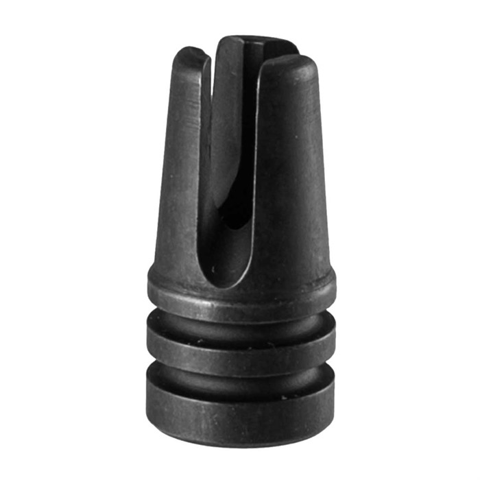 Complete your Retro build with the Brownells Improved 3 Prong Flash Hider. The “Improved” Flash Hider was used following the discontinuation of the early “Duckbill” 3 Prong Flash Hider, as the thin prongs tended to bend & break. This version is proper for Model 602 & 603 rifles, as well as the XM16E1 issued to the US Military and used during Vietnam. Looks great at home on a Retro rifle, or any AR-15 of your choice. “Improved” 3 Prong design has reinforced prongs Phosphate finish ½-28 threads Modeled directly off of original part DOES NOT COME WITH CRUSH WASHER Build the proper XM16E1 or Retro rifle of your choice with an Early 3 Prong Flash Hider. This muzzle device does not have wrench flats to install. A strap wrench or 3 prong armorers wrench is needed to properly install.