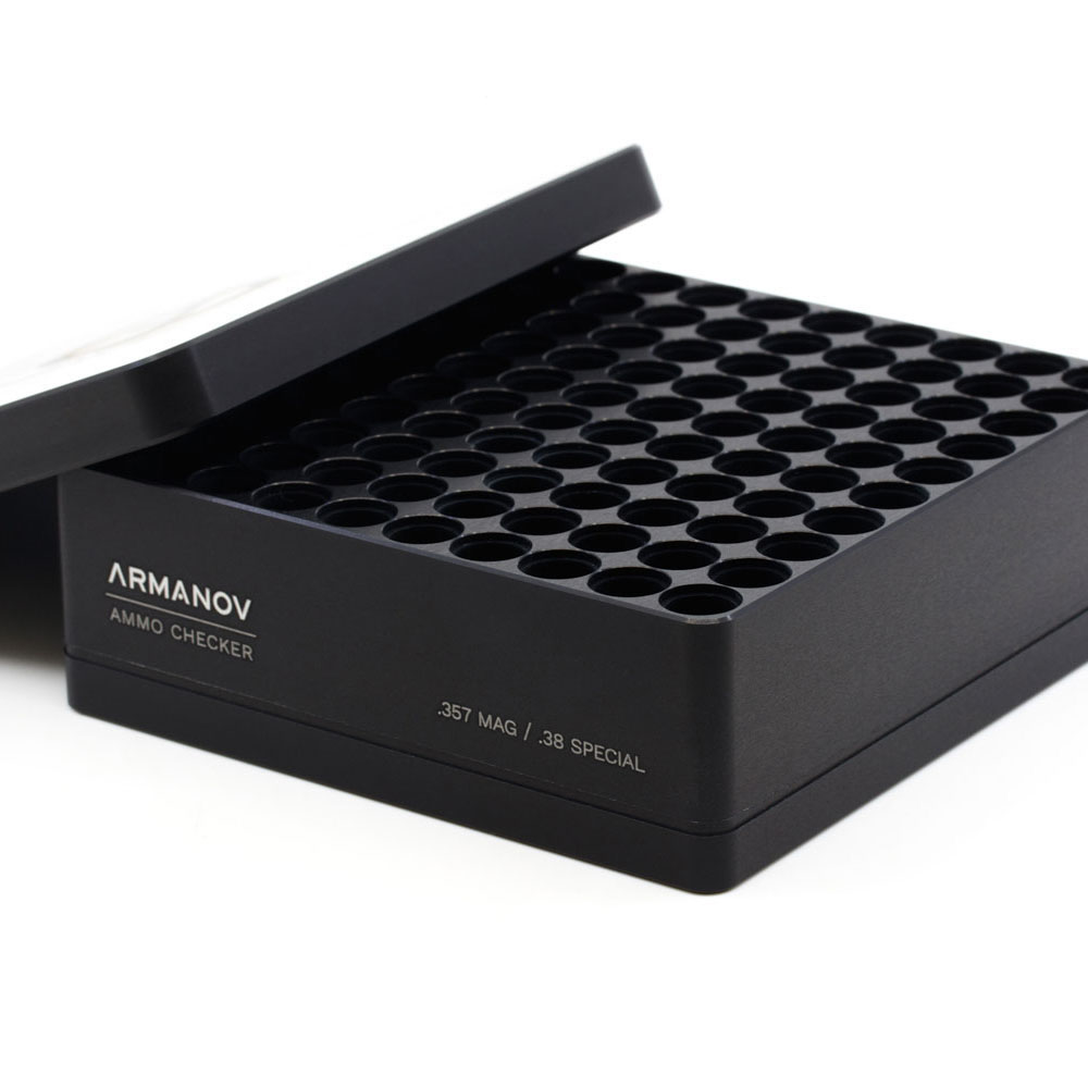 Molti tiratori sportivi ricaricano le proprie munizioni, quindi controllare la coerenza delle munizioni è un must, specialmente per le competizioni. L'Ammo Checker Armanov è realizzato in alluminio di alta qualità, con tasche rifinite utilizzando un reamer speciale realizzato secondo specifiche di tolleranza CIP rigorose. L'altezza della Gauge Box è lavorata con precisione per la lunghezza massima totale del rispettivo calibro, e questa caratteristica aiuta a trovare i proiettili con palle insufficientemente inserite.