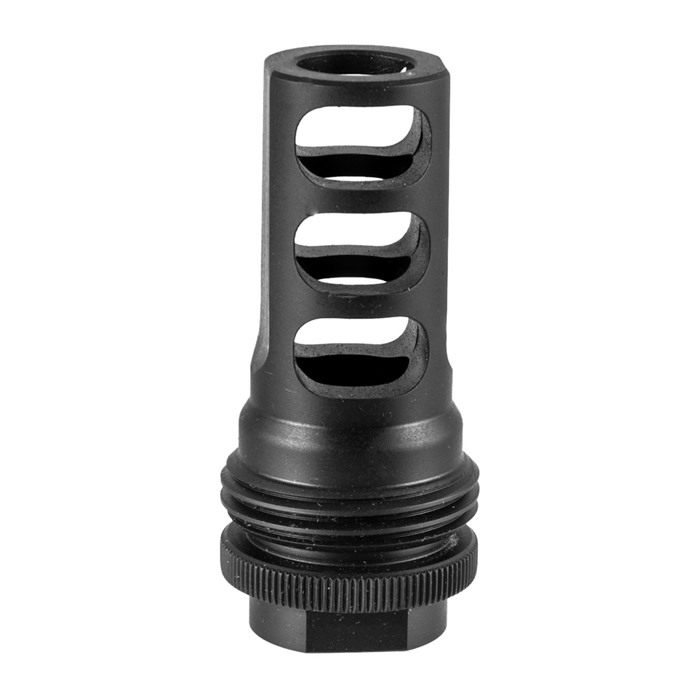SilencerCo’s Hybrid ASR muzzle brake makes changing suppressors a simple, one-handed, on-and-off operation. This 3-port muzzle brake works with SilencerCo sound suppressors that use the Active Spring Retention (ASR) mounting system, including Specwar, Saker, Omega, Hybrid, and Harvester Big Bore ASR silencers. .46" opening accommodates a variety of calibers Available with 5/8"-32 and 5/8"-36 thread pitches Stainless steel construction resists blast erosion Tough black nitride finish Comes with shims for easy installation When used alone, without a silencer attached, the SilencerCo Hybrid ASR muzzle brake effectively reduces felt recoil and muzzle climb to help you stay on target even during unsuppressed fire.