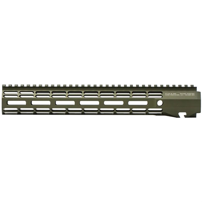 The ATLAS R-ONE is the newest addition to the Aero Precision Handguard lineup. Machined from 6061-T6 Aluminum, the R-ONE line of handguards are designed with size and weight in mind, providing the perfect handguard for your lightweight build. Our proprietary ATLAS attachment system is a durable and dependable mounting platform, maintaining a slim profile while still providing the strength and stability customers have grown to love from Aero Precision handguards. Available in KeyMod and M-LOK® profiles with 12" and 15" options (7" and 9" options coming soon). ATLAS The new Aero Taper Lock Attachment System (ATLAS) is both functional and aesthetically pleasing. It features 2 mirrored tapered locking nuts that provide evenly distributed clamping pressure across a custom engineered barrel nut with use of a turnbuckle screw. A ratcheting detent further secures the design while providing positive registration during installation. By design, the even pressure of the ATLAS system avoids distortion of the handguard often seen with current applications during installation. All hardware mounting parts are included with the purchase of an ATLAS Handguard. Lightweight By Design KeyMod Handguard Weights: 7" - 5.12 oz / 9" - 5.92 oz / 12" - 7.84 oz / 15" - 8.96 oz M-LOK Handguard Weights: 7" - 5.22 oz / 9" - 6.03 oz / 12" - 8 oz / 15" - 9.07 oz Mounting Hardware Weight: 4.72 oz (same across all ATLAS Handguard options) Features: Full top picatinny rail for optional attachments Quick disconnect sling socket at the 3, 6 and 9 o'clock positions Compatible with low profile gas blocks 1.3" Inside diameter 1.5" Outside diameter Compatible with mil-spec AR15 upper receivers and barrels ATLAS Handguards are designed to match seamlessly with our M4E1 Threaded Upper Receivers. Additionally, they are compatible with any Mil-Spec AR-15 upper receivers as well. However, they may not be compatible with billet upper receivers due to indexing tabs. Save when you buy them as a combo.