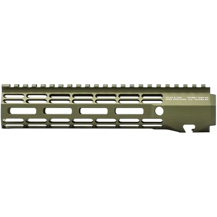 The ATLAS R-ONE is the newest addition to the Aero Precision Handguard lineup. Machined from 6061-T6 Aluminum, the R-ONE line of handguards are designed with size and weight in mind, providing the perfect handguard for your lightweight build. Our proprietary ATLAS attachment system is a durable and dependable mounting platform, maintaining a slim profile while still providing the strength and stability customers have grown to love from Aero Precision handguards. Available in KeyMod and M-LOK® profiles with 12" and 15" options (7" and 9" options coming soon). ATLAS The new Aero Taper Lock Attachment System (ATLAS) is both functional and aesthetically pleasing. It features 2 mirrored tapered locking nuts that provide evenly distributed clamping pressure across a custom engineered barrel nut with use of a turnbuckle screw. A ratcheting detent further secures the design while providing positive registration during installation. By design, the even pressure of the ATLAS system avoids distortion of the handguard often seen with current applications during installation. All hardware mounting parts are included with the purchase of an ATLAS Handguard. Lightweight By Design KeyMod Handguard Weights: 7" - 5.12 oz / 9" - 5.92 oz / 12" - 7.84 oz / 15" - 8.96 oz M-LOK Handguard Weights: 7" - 5.22 oz / 9" - 6.03 oz / 12" - 8 oz / 15" - 9.07 oz Mounting Hardware Weight: 4.72 oz (same across all ATLAS Handguard options) Features: Full top picatinny rail for optional attachments Quick disconnect sling socket at the 3, 6 and 9 o'clock positions Compatible with low profile gas blocks 1.3" Inside diameter 1.5" Outside diameter Compatible with mil-spec AR15 upper receivers and barrels ATLAS Handguards are designed to match seamlessly with our M4E1 Threaded Upper Receivers. Additionally, they are compatible with any Mil-Spec AR-15 upper receivers as well. However, they may not be compatible with billet upper receivers due to indexing tabs. Save when you buy them as a combo.