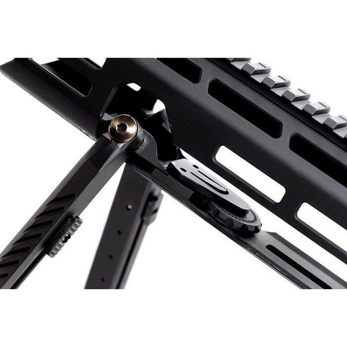 Realizzato specificamente per l'integrazione con i fucili AR-10, il bipiede BLK LBL è costruito in alluminio anodizzato resistente e acciaio inossidabile. Include un dado di sostituzione per il montaggio su qualsiasi ricevitore superiore mil-spec utilizzando una chiave da armere standard. È richiesto che il fucile abbia un blocco gas a profilo basso.