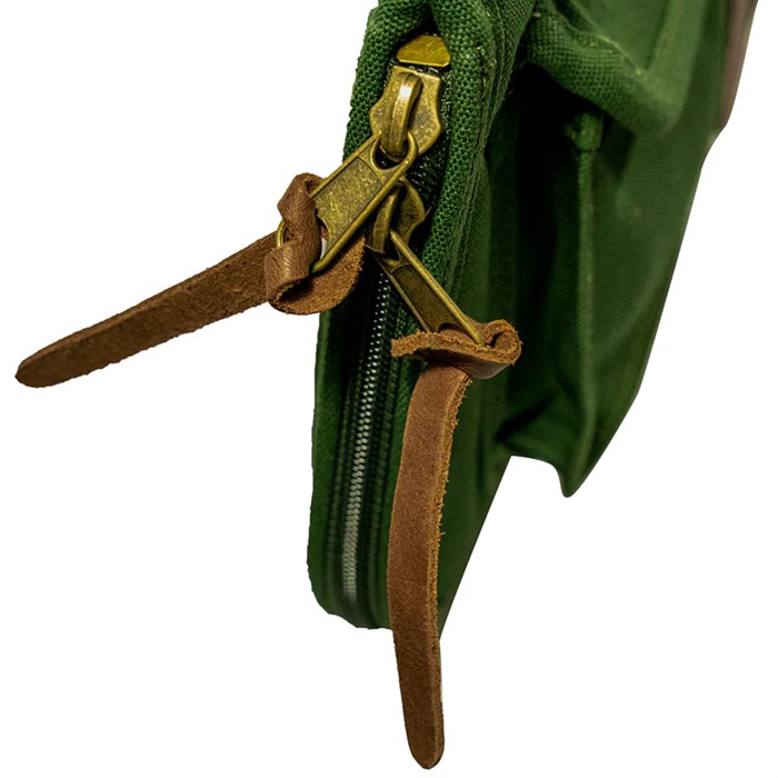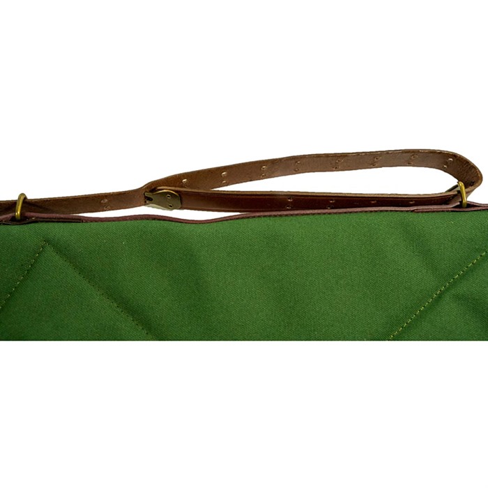 BOB ALLEN CANVAS SHOTGUN CASE The Bob Allen Canvas Series Cases is built from a rugged canvas duck exterior with a top grain leather trim. The harness leather sling is designed for over the shoulder or hand carry. A leather tip is added for extra protection at the muzzle end of the case. A quilted flannel lined interior with thick cotton batting provides a soft bed for your firearm. A self-repairing nylon zipper and a 10"x4.5" accessory pocket add the final touches. FEATURES: Heavy-duty, water-resistant canvas duck exterior Quilted flannel lining with cotton batting Leather spine & sling Leather tip for added protection at the muzzle #10 Self-repairing nylon zipper track Lockable, double antique brass zippers w/leather zipper pulls 10"x4.5" exterior accessory pocket