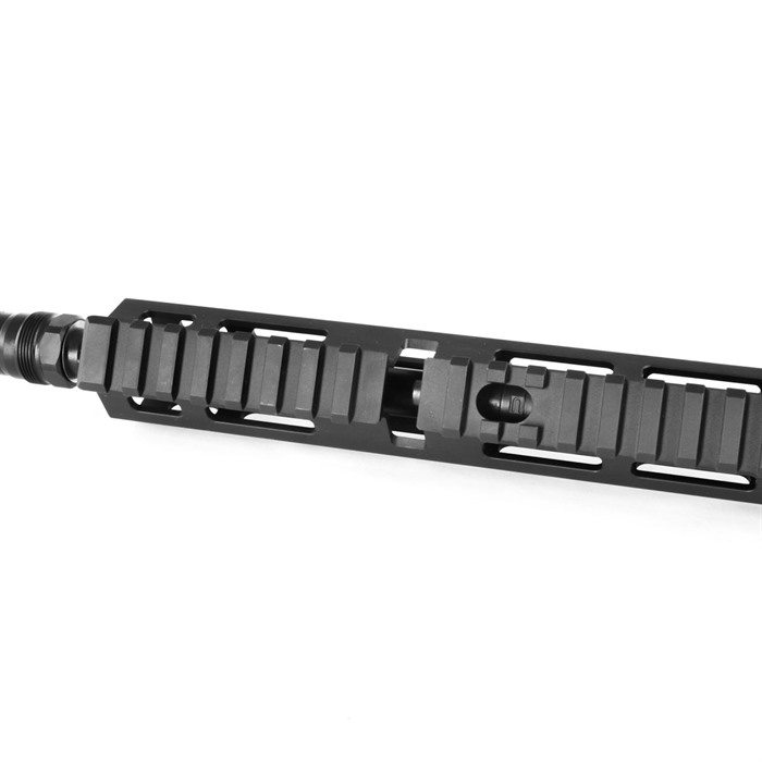 - Il rail Picatinny superiore a lunghezza intera è estremamente basso rispetto ad altri AR-15 a pistone, offrendo ampia compatibilità con montaggi ottici e mirini comuni.