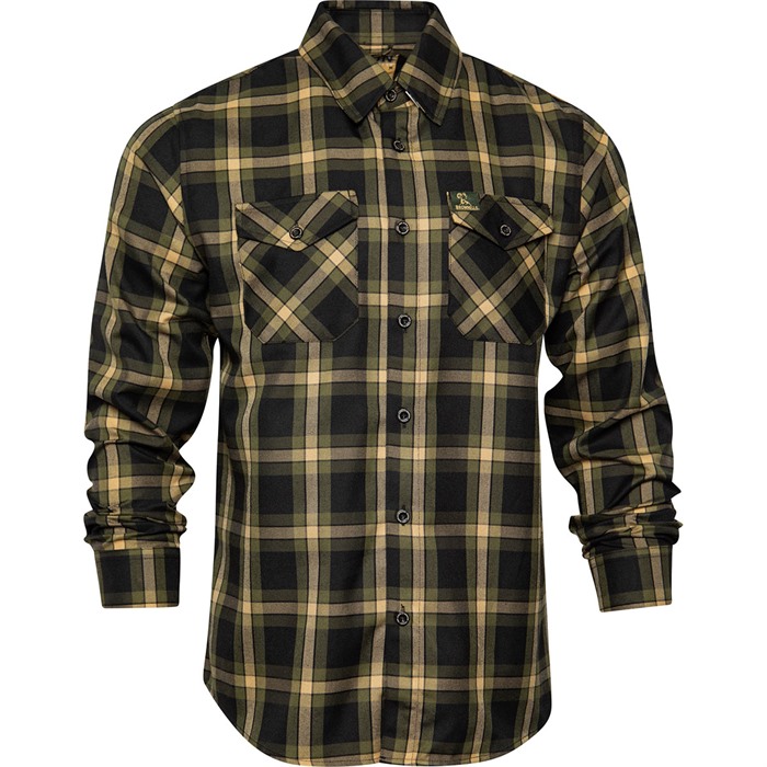 BROWNELLS PATERSON MEN’S FLANNEL LONG SLEEVE SHIRT FEATURES: Center box pleat for better range of motion and extra comfort in the chest, back, and shoulders without affecting the size or fit Microfiber cloth inside the bottom left corner to easily clean your glasses or devices without affecting the look or design Hanging loop just above the neck label for easy hanging on most racks and hooks Mitered edge on the chest pockets and sleeve cuffs for a tailored and designer finish Hidden collar-stay buttons to keep the collar held in place Signature D-Tech™ blend minimizes shrinking, wrinkling, and never needs ironing or dry cleaning Full snap button closure Button sleeve cuffs Dual snap button flap chest pockets Brownells brand tag on the left chest pocket Machine wash cold with like colors Hang to dry or tumble dry on low, do not iron Signature D-Tech™ polyester blend Relaxed Fit (Runs Big)