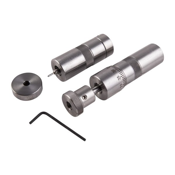 Il set di die per neck bushing L.E. Wilson è composto da un die di ridimensionamento della boccola e da un die di inserimento in acciaio inossidabile di precisione. Il die di inserimento in acciaio inossidabile di Wilson presenta una parte superiore micrometrica che consente di effettuare regolazioni fini della profondità di inserimento in incrementi precisi di .001".