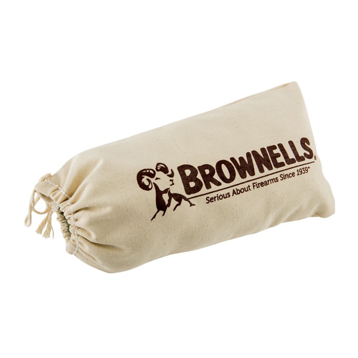 Because most of the big ammo companies have gone to plastic shot bags, finding those extra heavy-duty, canvas types we Ol Timers used to shoot off is almost impossible. That s why our gang decided to bring them back in better form than ever! We kept things simple, like they used to be...just good-old-fashioned, rugged and dependable, 10oz. heavy-weight duck canvas bags that hold whatever fill medium you want to put inside. Whether you need a bunch for the guys at your local gun club or just a few for out on the prairie dog towns, they provide excellent stability, portability, and no-scratch support for the forend and buttstock when precise accuracy is absolutely critical. More robust than standard shot bags of the past, plus they include a built-in drawstring for fast, easy closure if you don t like sewing the ends up after filling. Attractive silkscreen on one side features the Brownells ram and trademark. Available singly and in 3-paks.