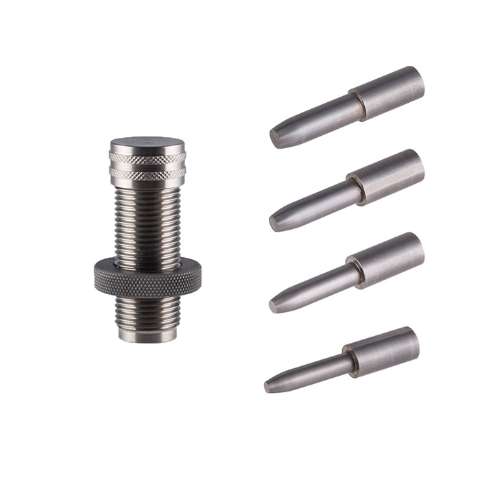 Il Kit di Mandrini Espanditori in Carburo Sinclair offre il nostro popolare Expander Die insieme ai mandrini espanditori in carburo più richiesti. I mandrini sono dimensionati a 0.001” sotto il diametro del proiettile e sono rettificati con precisione da barre di carburo solido per garantire tolleranze estremamente strette. Inizialmente utilizzati per l'espansione del collo prima della lavorazione, questi mandrini sono stati molto apprezzati anche per impostare la tensione del collo e mantenere la concentricità. I mandrini in carburo offrono maggiore lubrificazione e durata rispetto all'acciaio inossidabile e resistono al galling.
