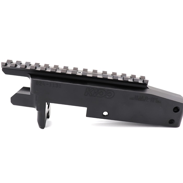 Il ricevitore KIDD .22LR Classic è un ricevitore aftermarket progettato per offrire un'installazione semplice e senza modifiche. Con un design slip-fit e dimensioni standard del settore, il Classic è dotato di un facile accesso per la pulizia posteriore e una base per ottica intercambiabile a bassa altezza con vari gradi di angolo (MOA) disponibili.