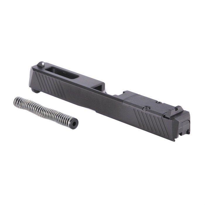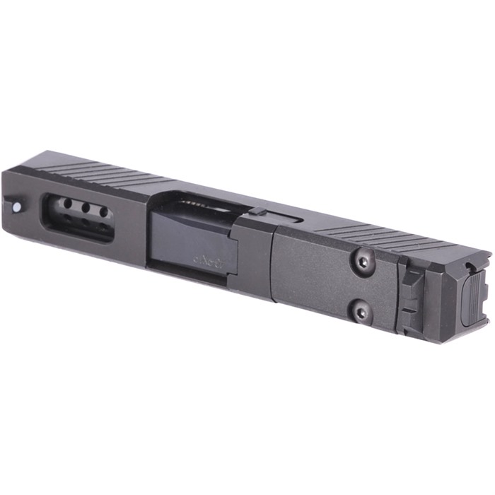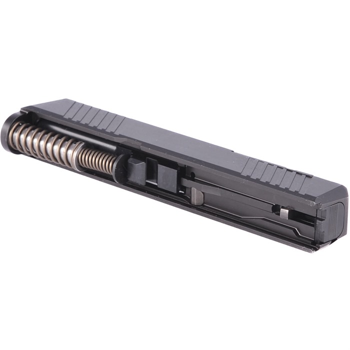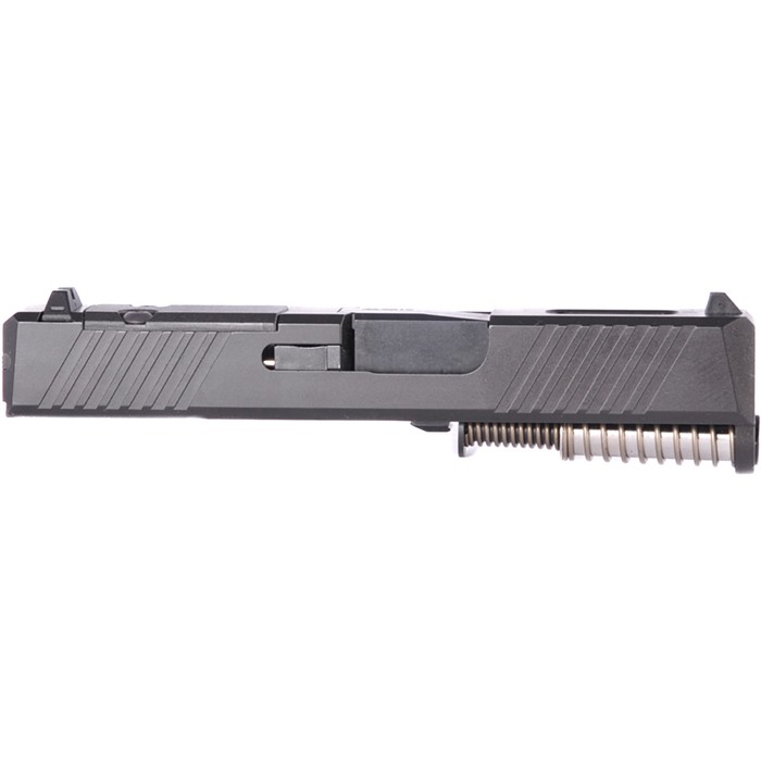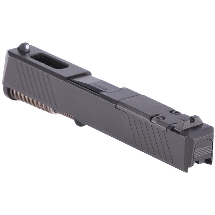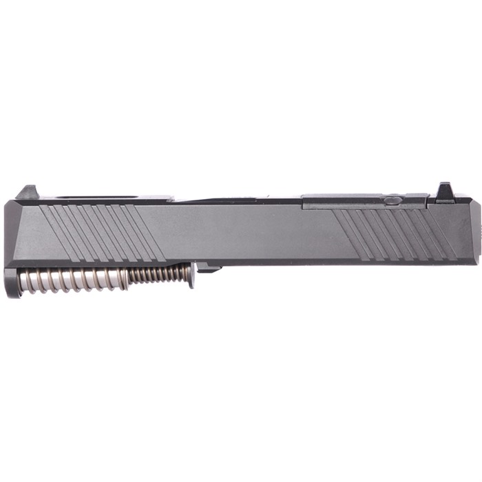 Fully Assembled, Complete Slide Assembly for New Builds or Upgrading Your Factory G43 Ready to build a new custom pistol or just upgrade your current Glock® 43? Top it off with our Complete Slide Assembly for Glock® 43, available in three configurations: with a premium match-quality barrel, a ½"-28 tpi threaded barrel to accept a sound suppressor, or with a ported barrel that vents through a window in the top of the slide to counteract muzzle rise and help you keep the sights on the target for subsequent shots. No need to install a bulky compensator on the muzzle, so your new comped pistol will still fit standard holsters for the Glock® 43. These slides come fully assembled with the barrel and all the internal small parts installed, making this RMR Slide the ideal upgrade for your factory Glock® 43 pistol or the perfect "top half" for a brand-new custom gun built on a compatible frame from another manufacturer. It features a pre-cut slot for easy, secure, low-profile mounting of a reflex red dot sight that fits the Holosun 407K footprint (adapter plates are available separately for RMR sights). If you're not mounting a red dot at the moment, we've included a lightweight reinforced polymer cover plate to neatly fill the slot. This slide comes with standard-height front and rear sights, which can serve as your primaries or a backup "iron" sights when paired with a red dot sight. Comes COMPLETE with barrel, front & rear sights, and small parts installed Fits Glock® 43 pistols & clones Built-in mounting slot for reflex sights with the Holosun 407k footprint Optic slot cover plate & recoil spring assembly also included Slide machined from 416 stainless steel billet, with a Black Nitride finish Choice of Solid top slide with standard barrel or ½"-28 tpi threaded barrel, OR distinctive top Window slide with ported/compensated barrel Each of our slides for Glock® starts life as a billet of 416 stainless steel that is machined to Glock® factory specifications inside, with a tough, extremely wear-resistant black Nitride finish. This slide fits standard Glock® factory G43 frames and compatible aftermarket frames. The match-quality barrel is machined from premium 416R stainless steel alloy. The muzzle of the threaded barrel has standard ½"-28 tpi threads. The ported barrel has eight ports angled to provide just the right counterforce to muzzle rise. On the sides at the rear, you'll find distinctive wide, shallow cocking serrations that give excellent "purchase" to rack the slide, plus a mirrored set of serrations up front that aid in manipulating the slide to press-check the chamber. Both sets of serrations make it easy to manipulate your pistol's slide from any angle and in any position. Hey, we have to admit these serrations just look very cool, too! Whether you're assembling a custom pistol to meet specific needs, or you're upgrading a factory Glock 43 for enhanced performance and versatility, a Brownells complete slide assembly is helps you complete your project quickly and easily! Brownells Gun Tech™ Note: Channel liner required for these slides. Channel liner is a press fit and requires a tool to install. We recommend #777-100-017.