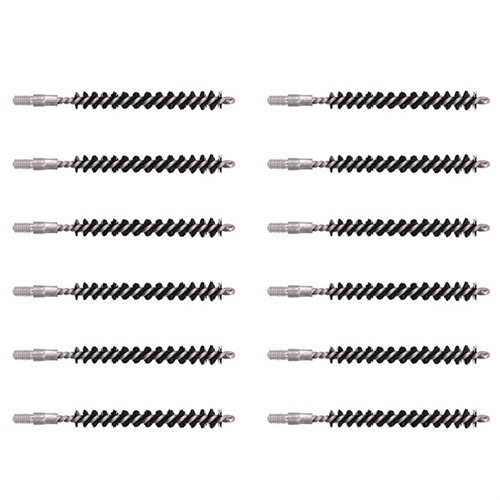 I pennelli presentano setole in nylon avvolte attorno a un nucleo in alluminio e un accoppiamento maschio filettato in alluminio, completamente privi di ottone, per eliminare le indicazioni blu-verdi di fouling da rame. Questi pennelli, simili in durezza all'ottone, non graffiano il calibro né danneggiano la volata, rendendoli ideali per un uso intenso.