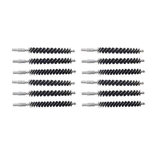 Le dense setole in nylon offrono un'elevata potenza di pulizia, pur essendo estremamente delicate sulle rigature. I pennelli per calibri .17 e .20 con filettature 5-40 estendono i benefici del sistema Copper Eliminator al tuo attuale asta per piccoli calibri. I pennelli per calibri .22 e superiori hanno filettature 8-32 per l'uso con le aste Copper Eliminator di Dewey.