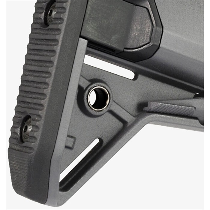 La versione con capacità di stoccaggio del calcio Magpul MOE SL™ è il MOE SL-S (Storage) Stock, un calcio di ricambio diretto per carabine AR15/M4. Il suo profilo elegante, le leve di rilascio dual-side e i tubi batteria impermeabili lo rendono il calcio con tubo di stoccaggio più snello disponibile sul mercato.
