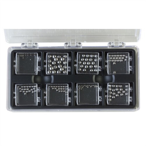 Le sfere di detent sono presenti ovunque ci sia un aggiustamento "click" in un'arma o in un jig; vengono persino utilizzate come sfere di controllo in alcuni sistemi a gas semi-automatici. Questo kit contiene 20 pezzi di ciascuna delle 8 dimensioni più comuni di sfere di detent trovate nelle armi da fuoco, ed è confezionato in un'apposita custodia "pill-box"/vassoio da banco. Include una tabella di riferimento incrociato dettagliata di tutte le sfere di detent elencate nei componenti delle armi che siamo riusciti a trovare. (Un ringraziamento speciale al nostro staff tecnico e a Gary Thiry, Sacramento, California, per aver lavorato a questo!)
