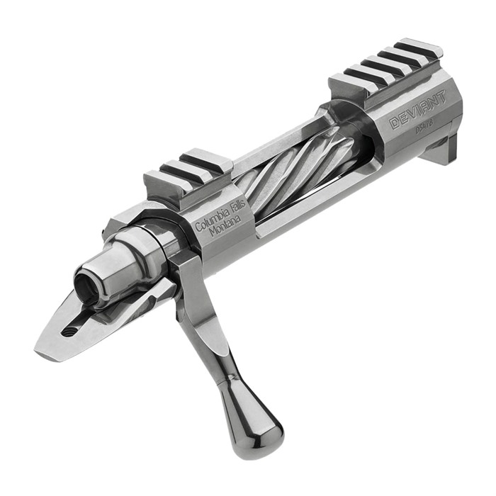 Whether you're building a dedicated hunting rig, a competition-ready match rifle or a general-purpose rig that can handle both with ease, the Defiance Machine Deviant GA Hunter rifle action is built to suit your needs. This rifle action is built with an open top, which allows for quick loading of BDL-style magazines, but the design is compatible with detachable-box magazines as well. The Defiance Machine Deviant GA Hunter action can be had in a number of configurations. The Long Action Magnum model comes with a .545 bolt face and is designed for use with hinged floorplates and Wyatt's Ultra Mag and standard internal box magazines. The Long Action model comes with a .595 bolt face and is designed for use with Rigby-length internal box magazines. A Medium Length action is equipped with a .408 bolt face. Each Defiance Machine Deviant GA Hunter action ships with the receiver body, one-piece bolt, bolt stop, bolt release, release pin and spring, extractor, knob, firing pin and pin spring, cocking piece, bolt shroud and trigger pins. Bolt fluting is available as an optional extra on push-feed bolts, and the actions can be had with either repeater or single-shot magazine cuts.