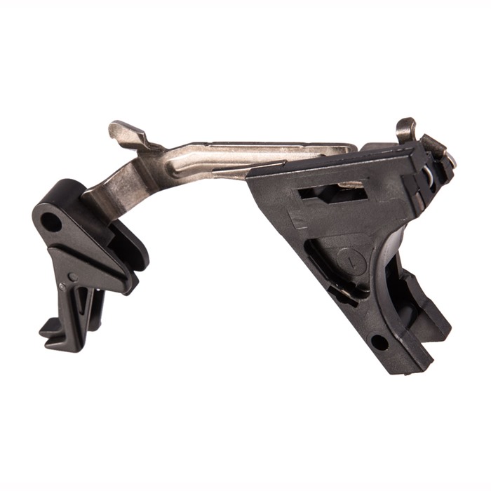 Bringing a wealth of knowledge and experience from its presence in the aftermarket for AR-15 triggers, CMC Triggers entered the handgun market with a modified trigger unit for one of the world's most-popular handgun designs: the Glock. Each CMC Glock Replacement Trigger provides owners with a drop-in unit designed to instantaneously enhance the performance of their gun's trigger. The CMC Triggers Glock Replacement Trigger is a complete unit that features OEM internals, including a Glock OEM trigger bar, springs and housing. However, the design features a flat-faced trigger shoe with a hooked bottom that reduces pull weight by two pounds over the OEM design. The trigger is constructed from a combination of 8620 alloy steel and S7 tool steel and features a positive trigger reset.