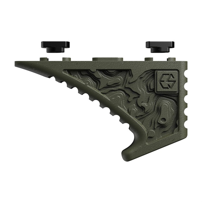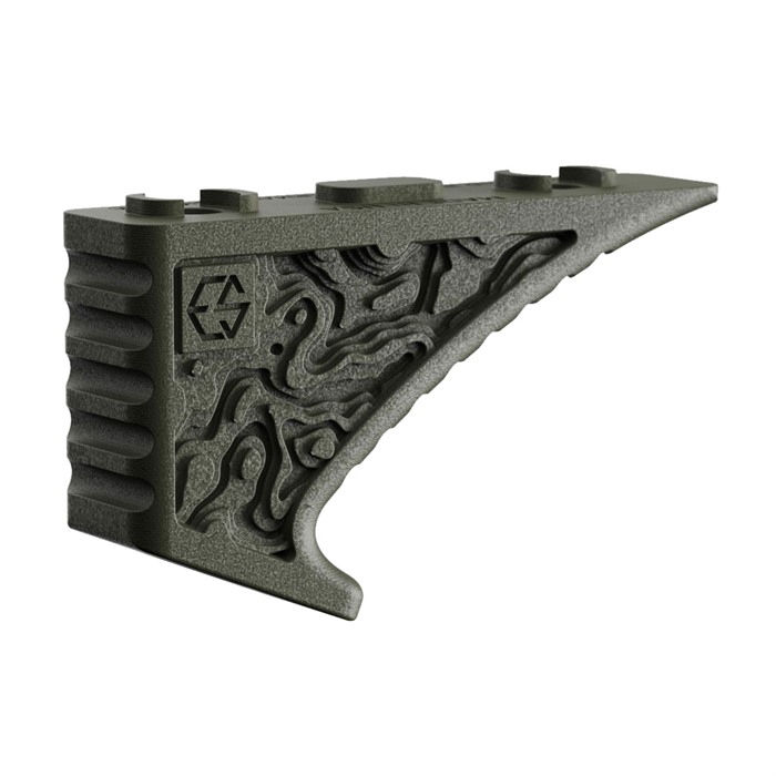 The ESD EFG (Enhanced Fore Grip) was designed to ease end-users ability to control their rifle, mitigate recoil, and have faster, more accurate follow-through. From the angle of the ESD EFG to the width, it’s made with human-centered design in mind. Its angle allows your wrist to be better aligned with your forearm thus strengthening your overall grip. The width of the ESD EFG fits perfectly with the length of the proximal flange of a user’s hand. This is important because it means your fingers are getting a more consistent and reliable grip than that of standard rifle grips. The ESD EFG has grooves all along the main curve and on the back of the grip. This allows for more consistency when your hands are wet or while wearing gloves. The grooves and the flat wall on the back section of the ESD EFG allow for more stability in unconventional shooting positions and on barricades. The hook on the bottom of the ESD EFG helps maintain a consistent placement of your hand without the risk of slippage during sustained fire. The hook also benefits the end-user when utilizing barricades to help capture and stabilize the firearm. The ESD EFG is made up of a Nylon material designed to withstand significant amounts of force and high temperatures. The material is known for taking abuse and when broken it tears vs cracking. This is important because if you do manage to damage your EFG it won’t be rendered useless and will allow you to finish the job at hand. The ESD EFGs are manufactured in Ranger Green, Flat Dark Earth (FDE), and Multicam are all cerakoted by friends at Weichel Coatings. ESD found their coatings to be the most consistent, and color and camo accurate. The ESD EFG is also compliant with firearms that are classified as pistols and is not classified as a vertical grip.