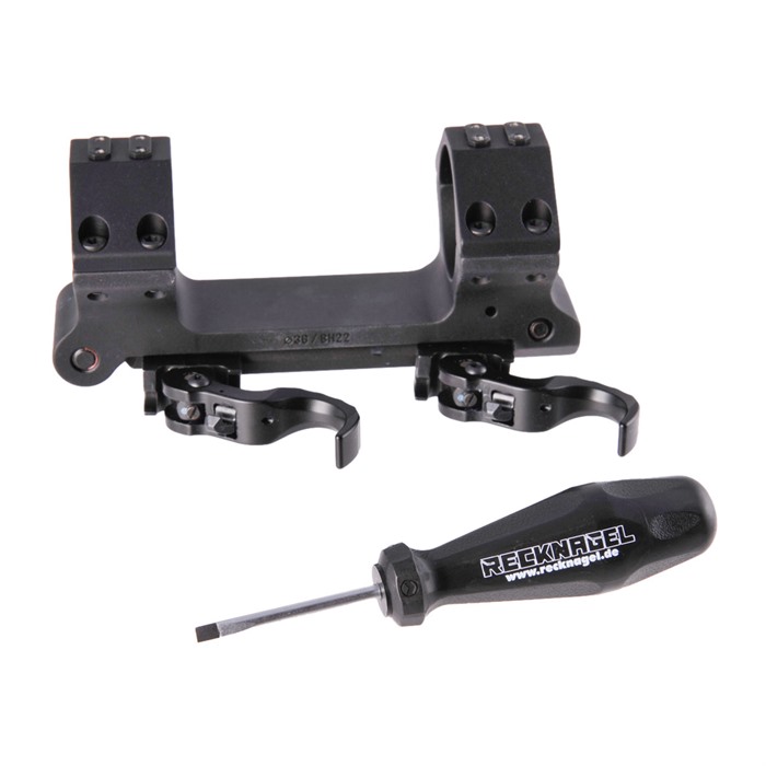 Spesso, la gamma di regolazione in elevazione del tuo mirino non è sufficiente a compensare la caduta del proiettile a lunghe distanze. Questo montaggio è stato sviluppato per compensare la mancanza di gamma di regolazione del mirino. L'inclinazione del montaggio può essere regolata individualmente in passi di 10 da 0 a 70 MOA.
