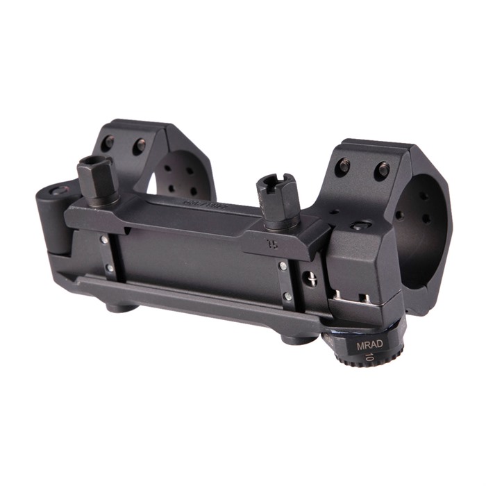Spesso, la gamma di regolazione dell'elevazione del cannocchiale non è sufficiente per compensare la caduta del proiettile a lunghe distanze. Questo supporto per cannocchiale è stato sviluppato per compensare la mancanza di gamma di regolazione del cannocchiale. L'inclinazione del supporto può essere regolata individualmente in passi di 10 da 0 a 70 MOA.