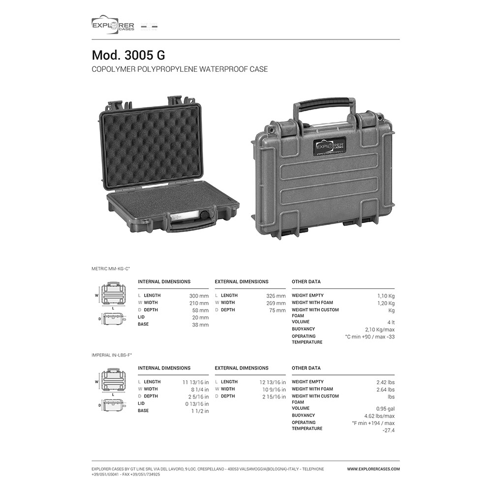 8024482181677 La migliore protezione per il tuo tesoro più prezioso - L'ultimato case per armi con una varietà di funzioni della massima qualità, prodotto da Explorer Cases in Italia. Specifiche: Lunghezza: 326mm (300mm interno) Larghezza: 269mm (210mm interno) Profondità: 75mm (58mm interno) Peso: 1,20kg (1,10kg peso a vuoto senza inlay) Colore : Verde militare Inlay: Pre-Cube Foam Letteralmente indistruttibile I case per armi di Explorer Cases sono dotati di cerniere metalliche resistenti alla corrosione con caratteristiche di ritenuta del coperchio, che fissano il coperchio e lo tengono in posizione quando è aperto. Puoi stare certo che i tuoi case per armi ti assisteranno a lungo. Grazie alle chiusure a scatto, i case per armi sono sempre altamente sicuri. La guarnizione O-ring li rende anche resistenti all'acqua in gran parte. Ogni case per armi è dotato di una valvola manuale di rilascio della pressione atmosferica. Pertanto, puoi stare tranquillo e non avrai problemi a maneggiare e chiudere il case. Esattamente come lo desideri I case sono forniti con ritagli interni per supporti interni opzionali o anelli di montaggio, così puoi riporre tutto esattamente come è più adatto alle tue esigenze. Ogni singolo case è dotato di un'etichetta rimovibile impermeabile con cui puoi etichettare la tua attrezzatura o memorizzare i tuoi dati. Il case può essere trasportato tradizionalmente tramite la grande maniglia frontale o tramite spallacci opzionali, che possono essere facilmente attaccati a qualsiasi modello. La serie 3005 è ottimizzata per il trasporto in aereo.Spedizione diretta da fornitore. I tempi di consegna possono variare in base all'origine dei prodotti.