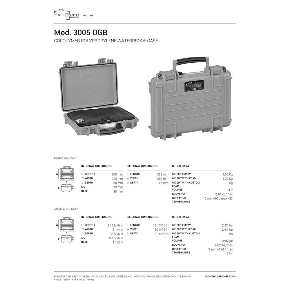 8024482184937 La migliore protezione per il tuo tesoro più prezioso - L'ultimissimo case per armi con una varietà di funzioni nella massima qualità, prodotto da Explorer Cases in Italia. Specifiche: Lunghezza: 326mm (300mm interno) Larghezza: 269mm (210mm interno) Profondità: 75mm (58mm interno) Peso: 1,20kg (1,10kg peso vuoto senza imbottitura) Colore : Nero Imbottitura: Schiuma Convoluta Letteralmente indistruttibile I case per armi di Explorer Cases sono dotati di cerniere in metallo resistenti alla corrosione con caratteristiche di bloccaggio del coperchio, che fissano il coperchio e lo tengono in posizione quando è aperto. Quindi puoi stare tranquillo che i tuoi case per armi ti assisteranno a lungo. Grazie ai ganci di chiusura, i case per armi sono sempre altamente sicuri. Il guarnizione O-ring li rende anche resistenti all'acqua in grande misura. Ogni case per armi è dotato di una valvola manuale di rilascio della pressione atmosferica. Pertanto, puoi stare tranquillo e non avrai problemi a maneggiare e chiudere il case. Esattamente come lo desideri I case sono forniti di ritagli interni per supporti interni opzionali o anelli di montaggio, in modo da poter riporre tutto esattamente come è più adatto alle tue esigenze. Ogni singolo case è dotato di un'etichetta rimovibile impermeabile con cui puoi etichettare la tua attrezzatura o memorizzare i tuoi dati. Il case può essere trasportato tradizionalmente tramite la grande maniglia frontale o tramite spallacci opzionali, che possono essere facilmente attaccati a qualsiasi modello. La serie 3005 è ottimizzata per il trasporto in aereo.Spedizione diretta da fornitore. I tempi di consegna possono variare in base all'origine dei prodotti.