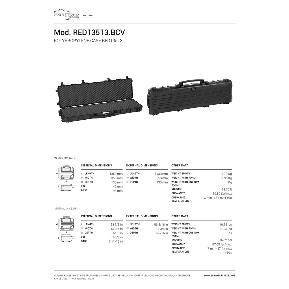Il RED 13513, EXPLORER CASES Red 13513 BCV - Schiuma Convoluta, è il caso per armi definitivo, realizzato con una varietà di funzioni e la massima qualità, prodotto da Explorer Cases in Italia.
