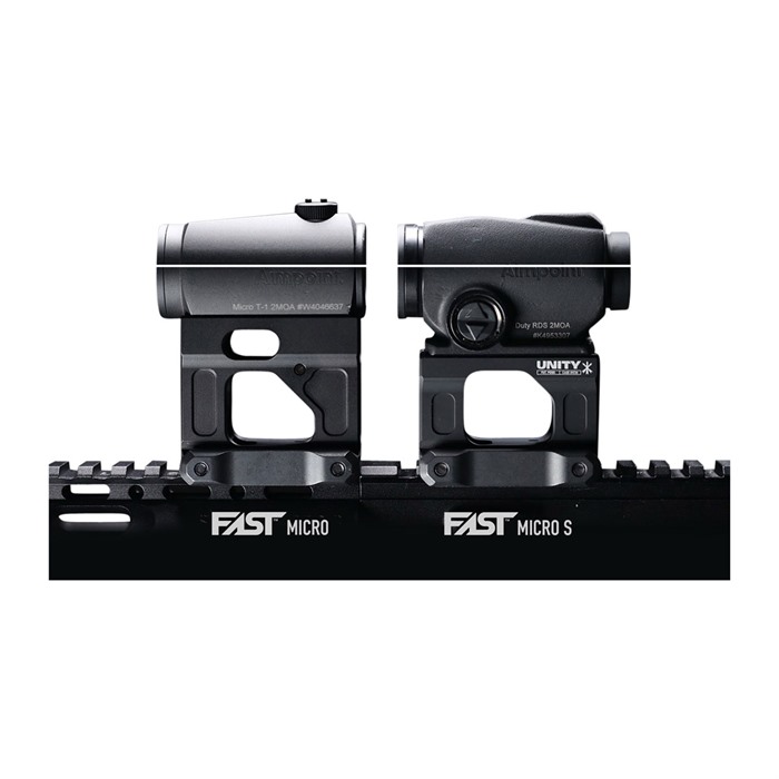 Il sistema di montaggio FAST è una serie di supporti ottici progettati per fornire agli utenti un'immagine visiva più rapida rispetto ai montaggi di altezza standard. Il FAST Micro Mount crea una linea centrale ottica di 2.26" dal binario, consentendo un'acquisizione più veloce e facile del punto rosso/reticolo mentre si indossano occhiali per visione notturna, maschere antigas, portaplato e altro equipaggiamento.