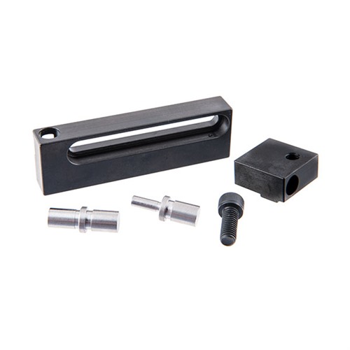 Questo blocco in acciaio lavorato consente di visualizzare senza ostacoli il punto critico di ingaggio. È compatibile con una vasta selezione di pin per martello e sear, dimensionati per varie pistole e fucili.