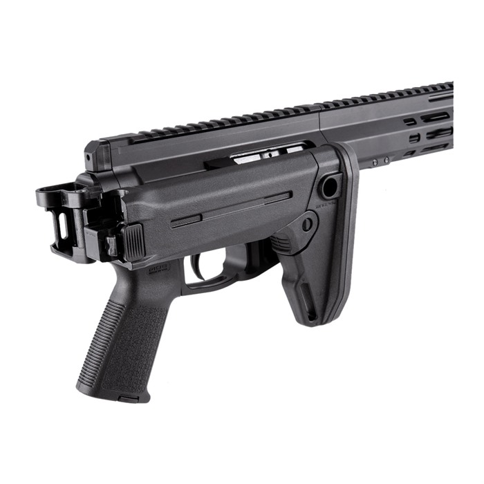 Il carrier si muove su una particolare molla di rinculo a doppia nidificazione, completamente trattenuta all'interno del ricevitore superiore. La maniglia di carica non reciprocante, posizionata anteriormente, interagisce con una porzione rialzata sulla chiave del gas del carrier. Questo sistema consente una facile manipolazione e caricamento dell'arma, mantenendo la mano di sparo sul grip.