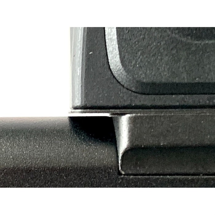 Il RMRcc ha il proprio footprint. Le due forature anteriori sono state sostituite da due grossi post filettati (boss) attraverso i quali sono installati le viti per il montaggio del mirino/piatto. Le viti per il montaggio del mirino/piatto sono anche significativamente rinforzate; tuttavia, con il design OPF-G, RMRcc che tiene il mirino immobile sul piatto, il diametro maggiore e le viti più resistenti non sono così cruciali. Accogliamo sempre viti che hanno meno probabilità di svitarsi.