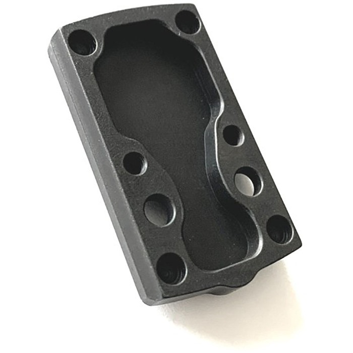 OPF-G43x/48, RMRcc (Optics Platform, Forward Controls, G43x/48, RMRcc) is the latest member of the OPF line. G43x and 48 MOS slides are designed for direct mounting of the Shield RMSc sight. Trijicon's RMRcc is longer, and requires an adapter plate which also necessarily raises the mounting surface in order to mount an RMRcc. RMRcc has its own footprint. Gone are the two lug holes in front, these are replaced by two larger diameter threaded posts (bosses) through which the sight to mount/plate screws are installed. The sight to mount/plate screws are also significantly strengthened, though with the OPF-G, RMRcc design that holds the sight immobile on the plate, the larger diameter and stronger screws aren't as important, we always welcome screws that are less likely to strip. With the OPF-G43x/48, RMRcc, we didn't merely raise the mounting surface to provide a platform for the RMRcc. As RMRcc is longer than the G43X/48 MOS cut, the sight overhangs on the slide. When installed, the bottom of RMRcc (with Trijicon provided sealing plate installed) is almost flush with the top of the slide so the sight is as low as possible. We positioned the RMRcc towards the center of the plate as much as feasible, this is done to reduce the amount of unsupported overhang on the RMRcc's sealing plate in front. RMRcc has a rubber gasket around its battery compartment to keep water and moisture at bay, which pushes the sealing plate downward. This isn't an issue if the plate is of the same length as the RMRcc, but with an overhang, it creates a slight gap between the gasket and the sealing plate. OPF-G43x/48, RMRcc's design eliminates the gap/opening between the sight and sealer plate, to the point of emulating a plate that's as long as the sight itself. To wit, if the plate is as long as the RMRcc, it will make the installed height of RMRcc even taller, which is the very reason we chose to let the sight overhang. Torque value: Plate to slide: 12 to15 in·lbs. Sight to plate: 18 in·lbs.. Weight: 0.75oz Material: 1018 steel, black nitrided