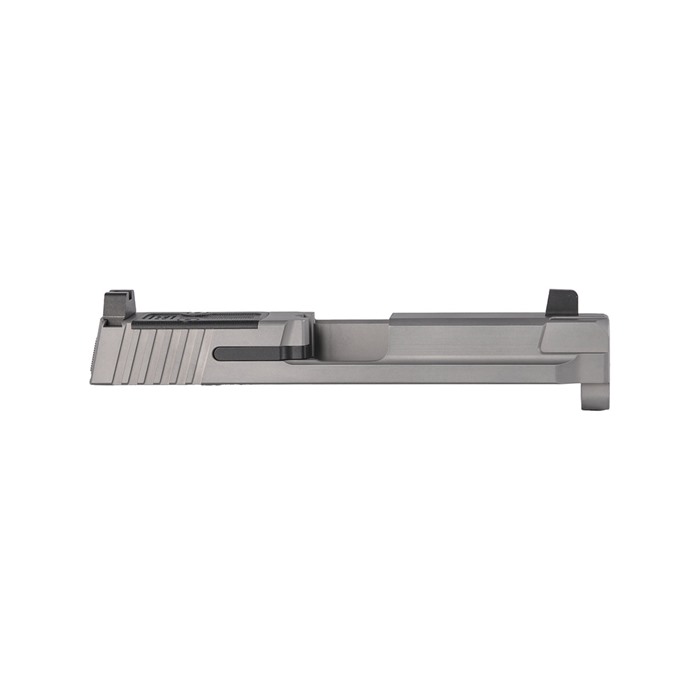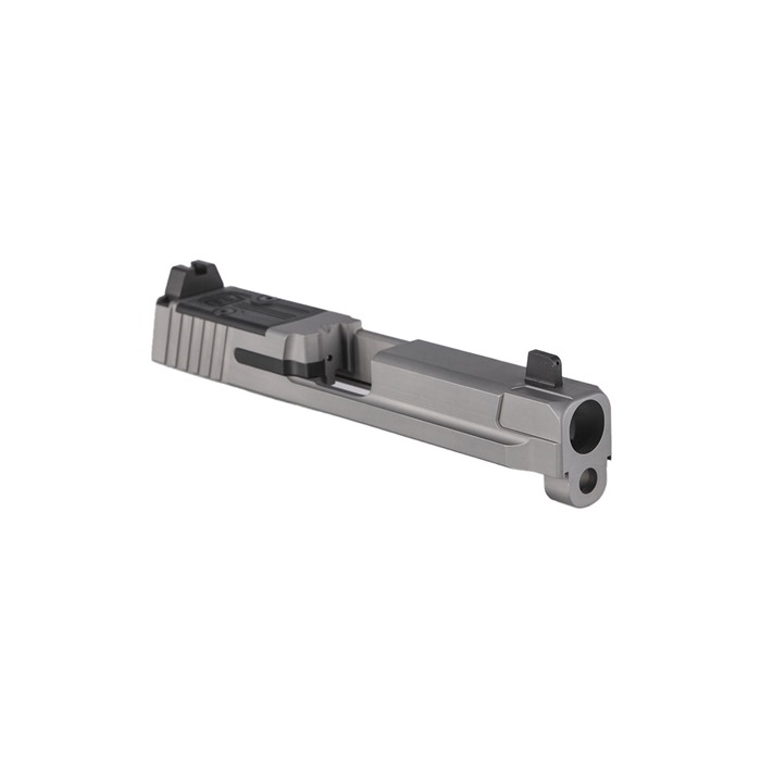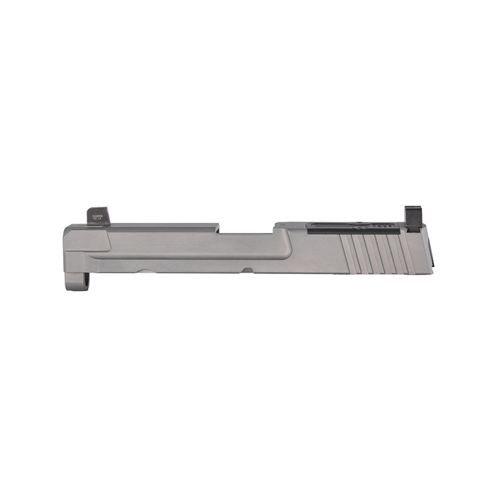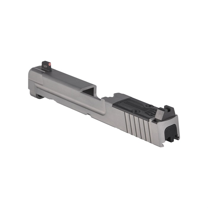 Custom machined slides for M&P® 2.0® full size pistols, completed with the custom extractor, serrated backplate, extended striker block plunger as well as suppressor height sights and all the little springs, pins, sleeves, and hard-to-find pieces, fully assembled and ready for drop-on assembly to your M&P® 2.0™. Compatible with polymer and metal frame. Custom machined from 17-4 stainless bar stock to precision tolerances, and cut for Trijicon RMR or SRO optic. Includes Ed Brown RMR coverplate.
