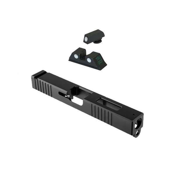 Brownells has taken the Guess work out of upgrading your Glock 19® or Glock 17®! We’ve paired our own versions of the slides with the Meprolight Sight Set. This set is a green front and green rear iron sight set! Our Iron Sight Slide for Glock 17® or Glock 19® Gen3 enables you to build a custom Glock®-style pistol - or rebuild an old one - with a slide that sports distinctive customized cocking serrations. The unique front serrations aid in manipulating the slide under stress, especially for quick chamber checks AND for clearing the occasional jam. Both the front and rear serrations are cut to the same depth as the Glock® factory slide serrations to ensure no loss in overall slide rigidity. The top edges and the front around the muzzle area are chamfered to reduce the risk of snagging on clothing and to make holstering the pistol easier. Like all Brownells slides, the Iron Sight model for Gen3 Glock® 17 or Glock 19® is precision machined from solid 17-4 stainless steel billet to factory specifications inside so it is compatible with any factory or aftermarket Gen3 internal components. Outside, there's a Glock® factory rear sight dovetail and front sight tenon cut ready for any factory or aftermarket sights you choose. This is the perfect companion "top-half" for a custom pistol built on a Polymer80 80% frame. Accepts Gen3 Glock® 17 or 19 internal parts Sturdy machined 17-4 stainless steel Tough matte Black Nitride finish Factory cuts for iron sights Channel liner not included; please order separately (see note below) Window model available You can get your Brownells Iron Sight Slide for Gen3 Glock® 17 or 19 with a solid top and distinctive wraparound front cocking serrations - swipe your paw along the front of the slide and you can't avoid racking it. The Iron Sight slide is also available with a window cutout on top between the front side serrations. The window aids in heat dissipation to keep the barrel cool during extended fire, AND if you have an upgraded barrel with a contrasting finish or a unique exterior pattern (fluting, spirals, "flames," etc.) it'll help your gun stand out from the matte black sameness on the firing line! Brownells Gun Tech™ Note: Channel liner required for these slides. Channel liner is a press fit and requires a tool to install. We recommend #777-100-017.