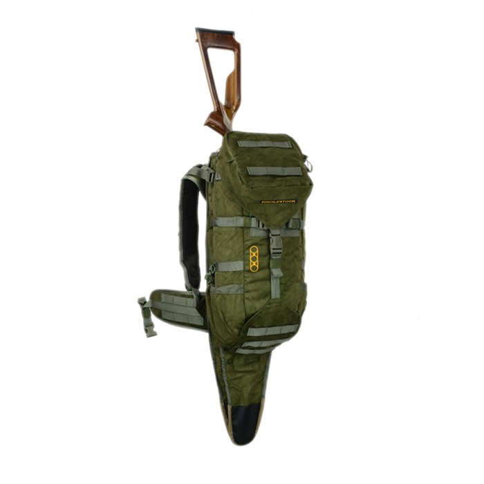 Il Eberlestock H2 Gunrunner Pack offre spazio sufficiente per l'equipaggiamento personale, consentendo agli utenti di tenere il fucile riposto nello zaino ma facilmente accessibile quando è necessario un colpo rapido.