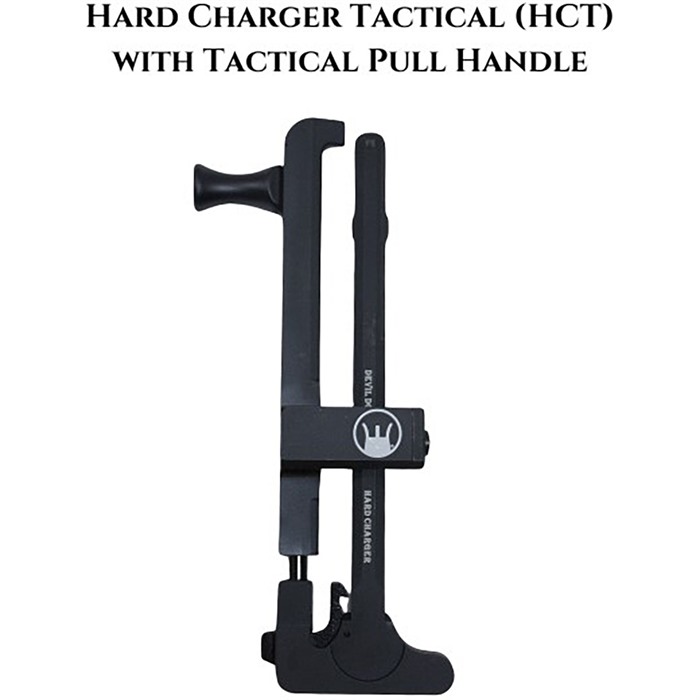 DEVIL DOG CONCEPTS HARD CHARGER TACTICAL SIDE-CHARGE HANDLE W/TACTICAL PULL HANDLE FOR AR-15 Hard Charger® Tactical with Tactical Handle - for Standard Forged, Mil-Spec AR-15/M4 Rifles No longer do you have to rebuild your upper receiver or buy a new rifle to have the side charging capability!! Turn your rifle in to a Side Charger without having to rebuild or modify it. Simply swap out the charging handle and install the Hard Charger. Takes a minute or less and you are up and running! FEATURES Devil Dog Concepts’ Side Charging Handle System = Ergonomically Beneficial Multiple Ways to Charge Interchangeable from Rifle to Rifle Non Reciprocating Removes Stress on Roll Pin Reduces Torque on Charging Handle Field Strippable – Gross Motor Skills Plenty of Room for Mounting Optics and Sights The HCT (Hard Charger® Tactical) Mounts to the 3rd Picatinny Rail and is designed to work on Standard, Forged, Mil-Spec Type Upper Receivers. This design mounts between a Back Up Sight and a forward mounted Optic. Not designed for Billet Rifles including Aero M4E1 SPEC For Standard, Forged Flat Top AR-15s Made from 7075 Aluminum Anodized Black, and Steel Weighs 6ozS 5 year manufacturer warranty. U.S. Patent No. 9,746,263 U.S. Trademark Reg. No. 5,354,510