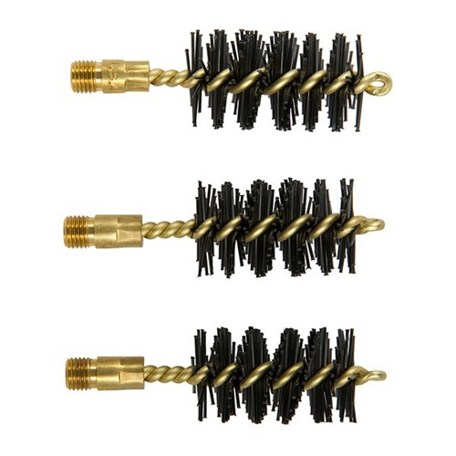Super-aggressive, nylon brush makes short work of stubborn bore deposits. Extra-stiff, large diameter bristles are safe on rifling and smoothbore surfaces. Won’t deteriorate when used with your favorite solvent. Strong, one-piece, looped and wound brass shank and coupling prevents scratching. SPECS: Bristles: Heavy weight (HW) nylon. Shank: Brass, looped and wound. Overall Length: 2 7/8” (7.3cm) Thread: 5/16”-27 male