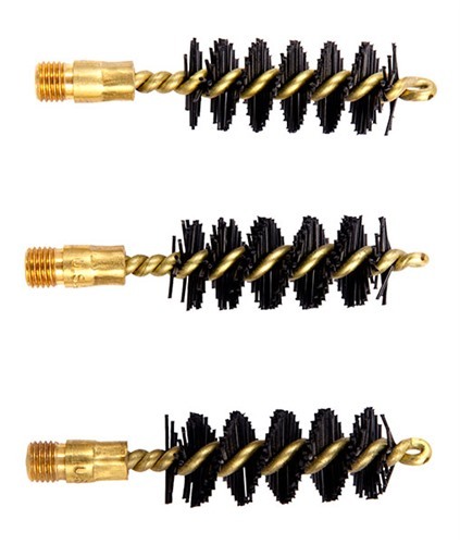 Super-aggressive, nylon brush makes short work of stubborn bore deposits. Extra-stiff, large diameter bristles are safe on rifling and smoothbore surfaces. Won’t deteriorate when used with your favorite solvent. Strong, one-piece, looped and wound brass shank and coupling prevents scratching. SPECS: Bristles: Heavy weight (HW) nylon. Shank: Brass, looped and wound. Overall Length: 2 7/8” (7.3cm) Thread: 5/16”-27 male