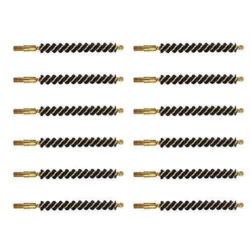 Super-aggressive, nylon brush makes short work of stubborn bore deposits. Extra-stiff, large diameter bristles are safe on rifling and smoothbore surfaces. Won’t deteriorate when used with your favorite solvent. Strong, one-piece, looped and wound brass shank and coupling prevents scratching. SPECS: Bristles: Heavy weight (HW) nylon. Shank: Brass, looped and wound. Overall Length: 3.26” (8.3cm) Thread: 8-32 male