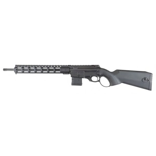 FEATURES: OPERATION: Closed Bolt FIRE MODE: Lever-Action WEIGHT: 5.7 lbs OVERALL LENGTH: 37.75” BARREL LENGTH: 16.25” Threaded ½ x 28 MUZZLE DEVICE: Factory Thread Protector WIDTH: 2” SIGHT/OPTIC INTERFACE: MIL-STD 1913 ACCESSORY INTERFACE: M-LOK BUTT STOCK: FightLite® High-Impact Polymer MAGAZINE: AR Pattern (4179 STANAG) MAGAZINE RELEASE: Standard SAFETY SELECTOR: Push-Button L/R BARREL: 4150V Chrome Moly Steel with low maintenance, gas-ferritic nitro-carburized finish • Threaded 1/2x28 for suppressors and muzzle devices • Repeats trajectory zero • Factory Thread Protector BREECH BOLT: CNC Machined from high-strength steel alloy with protective finish • Heat treated to exact specifications for durability and wear resistance USER CONTROLS: Ambidextrous Lever-Action CALIBER CONVERSION: Caliber Convertible at the user level without tools by substitution of standard pattern AR uppers