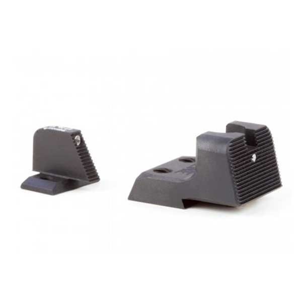 These sights feature the very popular Ledge style rear that is designed for quick acquistion of the front sight utilizing a wider notch width of .156. The rear face of the sight is serrated and has enough material to catch on your belt, boot, jean seam...any surface available in an emergency for one-handed clearance drills! In addition this sight set is equipped with the legendary Heinie Straight Eight night sight system. This is a must-have modification for your carry pistol! This rear sight utilizes the NEW Heinie EZ-Lock mechanism that allows the sight to slide smoothly into the rear dovetail yet remain secure on your slide once installation is completed properly. Installation instructions are provided. Fits the HK 45, 45C & P30 Tactical Pistols, to be used with suppressors.