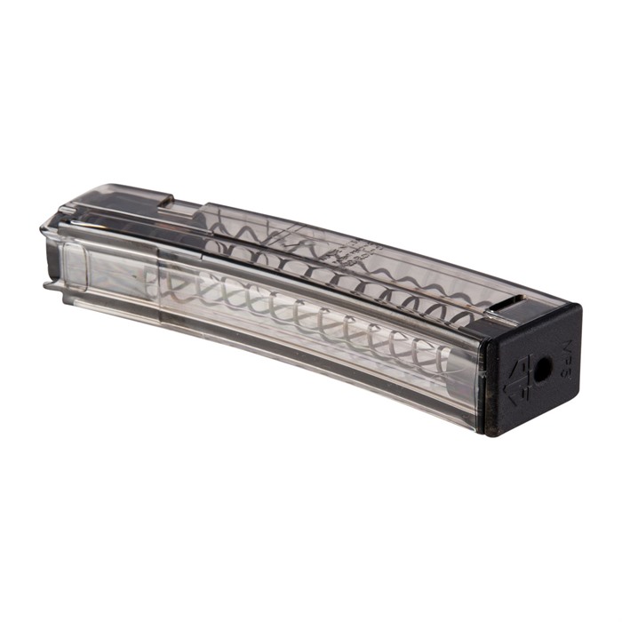 ETS translucent polymer magazines are tough and reliable. Constructed out of lightweight performance polymer, the translucent magazine bodies enable you to keep a close eye on your round count, as well as quickly identify whether or not a magazine is loaded. ETS translucent polymer 9mm H&K MP5 magazines are available in 10, 20, and 30, and 40-round capacities to accommodate your shooting demands. Built to withstand extreme impact, these magazines are ready for duty, defense or recreation. Easy disassembly with specially designed base plate Compatible with aftermarket floorplates Creep resistant - feed lips and body won't spread when stored long term, even when loaded ETS translucent polymer magazines keep your MP5 supplied for duty and for practice.