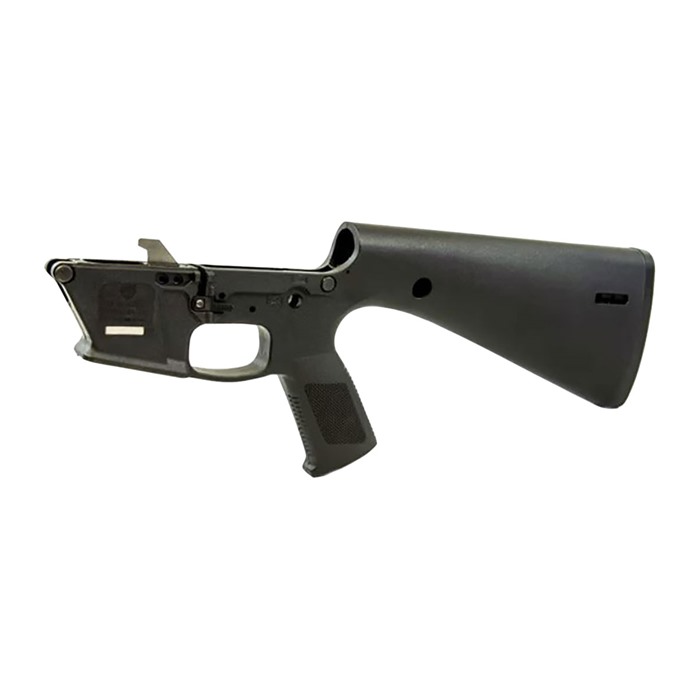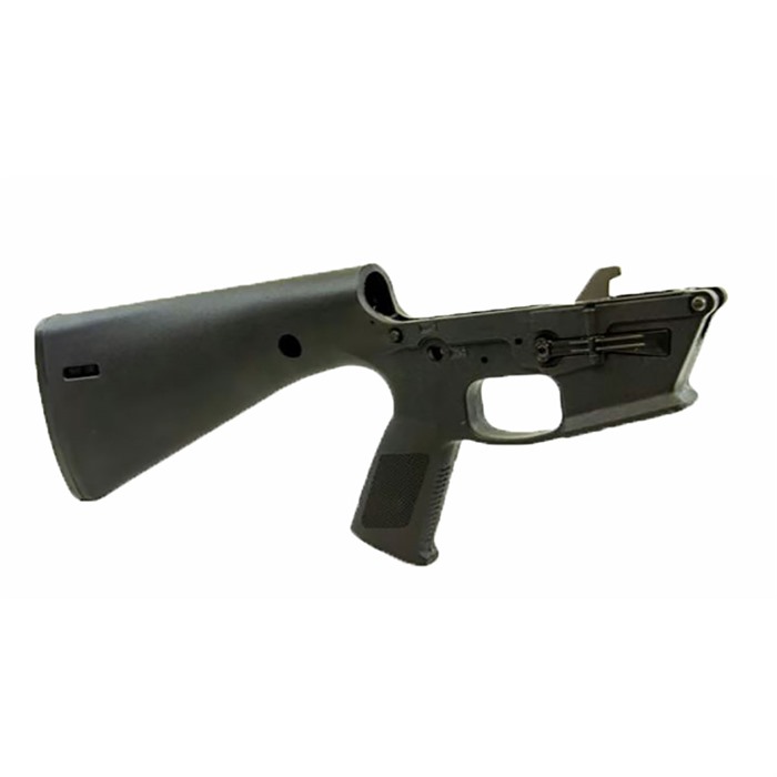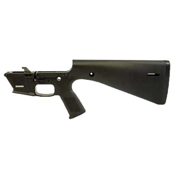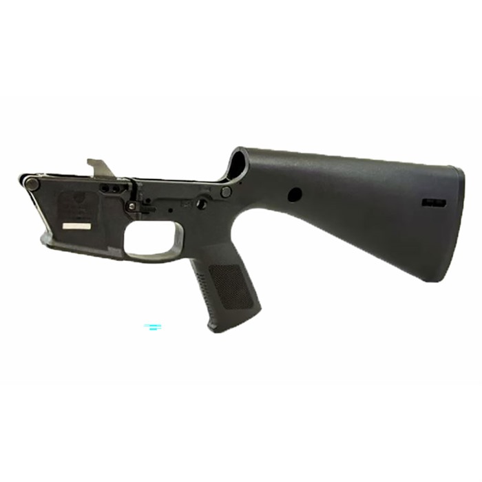 The KP-9 is a monolithic polymer 9mm Glock Mag Compatible AR15 style receiver made from injection molded 30% glass filled nylon incorporating the buttstock, buffer tube, pistol grip, and trigger guard into the receiver design as integral components. This manufacturing process offers several advantages Lighter weight compared to similarly configured receivers Lower cost to similarly configured receivers Increased production speed and elimination of sub components through integration; especially important during high demand cycles in the market. Features Include: Compatibility with most common 9mm AR15 uppers and lower parts kits Compatible with Glock 17 and 19 Magazines Flared magwell to make reloads under stress easier to perform. A1 Length 13” Length of Pull (LOP) Buttstock to fit a wide range of shooters MLOK Slots at rear of stock for sling attachement points or run a strap through it for simple sling attachment Holes at the front of the stock for QD socket inserts for more sling attachment options Improved grip for comfortable use “Winter” Trigger Guard Stripped Lowers Include: Pivot and Take Down Pins KP-9 Selector Detent Buttplate 5/64" Roll Pin to Retain Buffer Detent Ambi Glock Magazine Catch Assembly Adjustable 9mm Steel Ejector Technical Information The KP-9 receiver uses a Carbine buffer and spring. Do NOT use anything other than standard 9mm carbine buffers and round springs or the JP SCSS in the KP-9. The Take Down and Pivot Pins have the detents built into them; eliminating the spring and detent holes in the lower increases durability. The buffer detent (should you choose to use it) is held in place with a 5/64” Roll Pin The KP-9 is compatible with all Mil-Spec Fire Control Groups The KP-9 is compatible with cassette style match triggers including the KE Arms SLT units. The retention system of these triggers with D-Clips in the bushings to retain the fire control pins makes them better suited for use in the KP-9 than other designs that require captured pins.* The hammer pin area is wider for durability; Standard AR15 hammer pins can still be used but we offer a longer hammer pin for customers preferring a flush pin for aesthetic reasons. Safety selector spring and detent load from the top and then the selector is slid over them. Standard selectors can work but removing them can be particularly difficult. We recommend the use of our optimized mil-spec selector or optimized ambi selector to make removal easier. Follow our assembly guide for further instructions. The KP-9 is compatible with 9mm blowback systems with a 5.4oz carbine buffer minimum. Use heavier buffers as long as your gun can cycle reliably. Failure to use this minimum buffer weight can damage the lower. CMMG Radial Delayed Blowback Uppers will need modifications to the ejector to work. Cerakoting: If you intend to have your KP-9 Cerakoted we recommend you use We Plead the 2nd as they are experienced in coating polymer receivers and have our authorization. The bake should be done at low temperatures (<190 Degrees F) and with an upper in place to prevent warping. Last Round Bolt Hold Open Last Bolt Hold Open Functon is dependent upon the upper you use. The standard bolt catch does not interface with the Glock Magazine follower. Some uppers such as those from Gibbz Arms and New Frontier Armory have linkage systems that interface with the Glock magazine followers and extend back to the bolt catch. Without one of these uppers, the bolt catch can still be manually actuated to verify a clear firearm or make inserting a magazine with high tension easier.