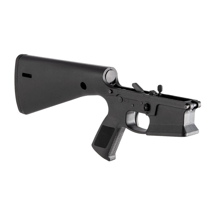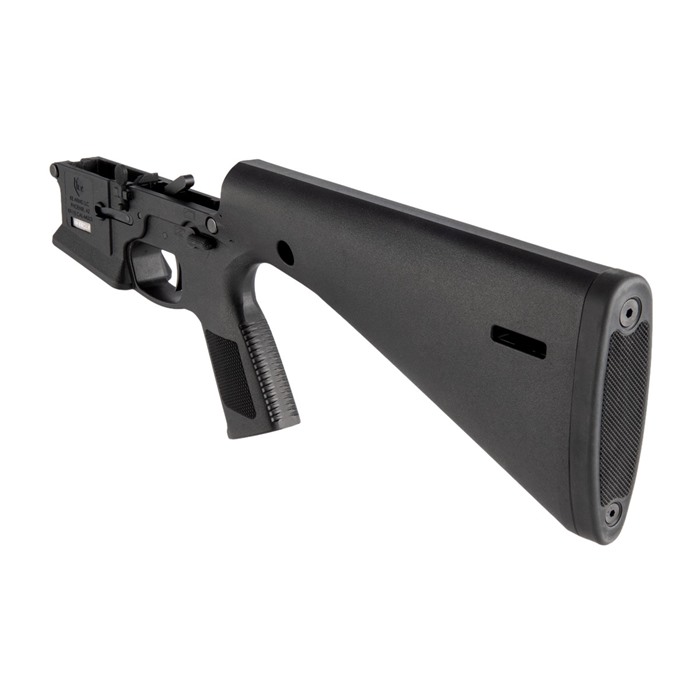 What makes this lower different than its counterparts? The answer is simple… the KE Arms KP-15 is a monolithic polymer AR-15 style lower receiver made from injection molded, 30% glass-filled nylon. Its unique design incorporates the buffer tube, pistol grip, trigger and a 13-inch (LOP) buttstock into the receiver as integral components. The result is an affordably priced, lightweight lower receiver. This complete model includes the KE Arms DMR Trigger, with 4.5lbs pull. The KE Arms KP-15 lower receiver uses a carbine buffer and spring. The take down and pivot pins have built-in detents, which increases durability by eliminating the spring and detent holes. The buffer detent (should you choose to use it) is held in place with a 5/64” roll pin. The hammer pin area is wider for durability; standard AR-15 hammer pins can still be used, though the KE Arms longer hammer pin is recommended for customers preferring a flush pin for aesthetic reasons. The safety selector spring and detent have been designed to load from the top, then the selector is slid over them. (Standard selectors can work but removing them can be particularly difficult. KE Arms recommends the use of their designated mil-spec selector or ambi selector to make removal easier. Follow the manufacturer’s assembly guide for further instructions.) Weight: 1.704 lbs. Compatible with all Mil-Spec fire control groups Compatible with cassette style match triggers Flared magwell Available in black and flat dark earth MLOK Slots at rear of stock for sling attachment Pre-drilled in front for QD socket inserts Uses a standard bolt catch. Cannot accept the PDQ lever. The PDQ lever is exclusive to the WWSD complete rifle. Do NOT use anything other than standard carbine buffers and round springs or the JP SCSS in the KP-15. WARNING!: This item is legally classified as a receiver. You Must be 21 years old to purchase this item and a resident of the same state your transferring dealer is licensed in. The KE Arms KP-15 is compatible with standard AR-15 uppers in calibers including .223/5.56mm NATO, .300 Blackout, 6.5mm Grendel and 6.8mm SPC. The lower receiver is also compatible with 9mm blowback systems, when used with a minimum buffer weight of 5.4oz (carbine). Failure to use a minimum buffer weight of 5.4oz can damage the lower. CERAKOTE: If you intend to Cerakote your KP-15 the manufacturer recommends the bake should be done at low temperatures (<190 Degrees F) and with an upper in place to prevent warping. WARRANTY: The KE Arms KP-15 has a lifetime warranty for normal use. If the receiver breaks through misuse or neglect, KE Arms will replace it ONCE for $65.00. NOTE: Not recommended for .458 SOCOM, .50 Beowulf or .50 BMG. Please contact KE Arms if you intend to register your KP-15 lower receiver as an NFA weapon.