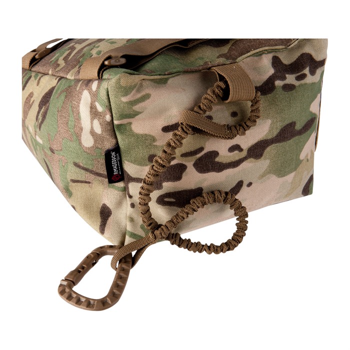 Il Bungee Gear Lanyard incluso e l'ITW Nexus Tac Link consentono un facile attacco ai passanti della cintura o all'equipaggiamento, permettendo un utilizzo semplice in una varietà di posizioni senza la necessità di rimuovere il cordino. Nessun altro supporto offre la combinazione di leggerezza, comodità, sicurezza e velocità dei Fat Bags di Armageddon Gear!