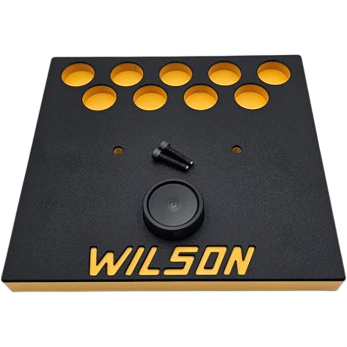 L.E. WILSON, INC. TRIMMER PLATFORM HOLDS 9-CASES The Wilson Case Trimmer Platform enhances reloading efficiency with secure case holder storage, a built-in tapping block, and a stable work surface. FEATURES Efficient Storage: The platform includes dedicated storage space for up to nine (9) case holders, ensuring your tools are always within reach. Integrated Tapping Block: A built-in tapping block allows easy removal of cases from the holder, streamlining your reloading process. Durable Construction: Made from high-quality polyethylene, the platform is sturdy and lightweight, offering long-lasting performance. Secure Mounting: Equipped with rubber feet for stability, the platform can also be c-clamped to your bench for added security during use.