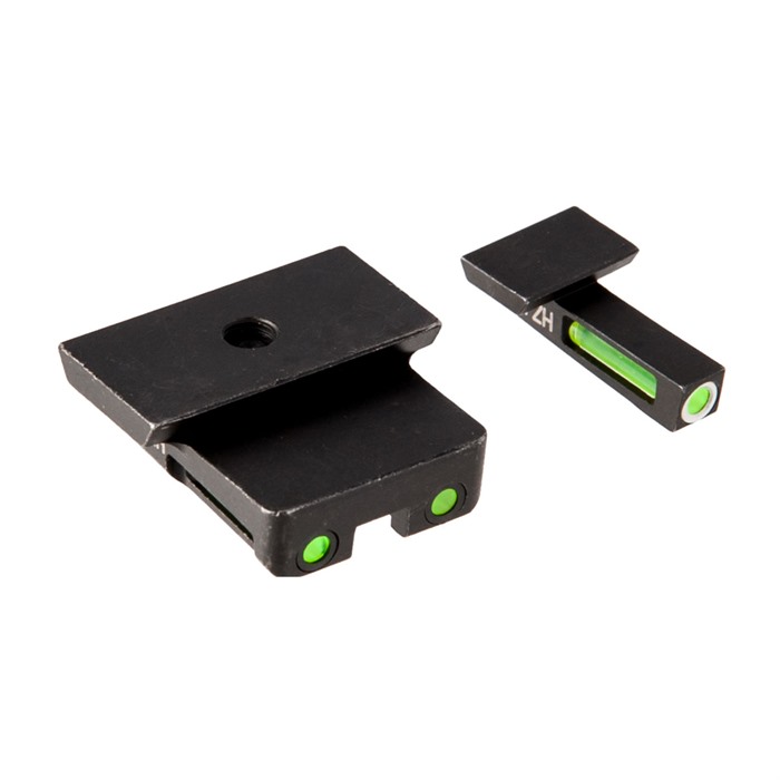 LiteWave H3™ Green Sights from HIVIZ deliver a one-two punch of Tritium and LitePipe fiber optic technology to ensure you can see your pistol's sights 24 hours a day in ANY light conditions. The LitePipe fiber optic rods gather ambient light to produce bright green aiming dots that are as easy to acquire in the sunlight of high noon as in the gathering shadows before sunset. At night, the LiteWave H3™ sights' green self-illuminating Tritium inserts - filled with extra-bright "H3" Tritium gas - take over to maintain full visibility of those three dots. Day or night, a white outline around the front dot helps the shooter distinguish it from the rear dots. Exceptional visibility in ANY light conditions Traditional, intuitive horizontal 3-dot pattern All dots are GREEN - other colors available separately White outline differentiates front dot Steel sight bodies with durable satin black finish Fits factory dovetails Factory height - will not interfere with standard holsters 1911 set fits all Kimber pistols with fixed sights; does not fit Micro Glock models available for standard, large, and G42/43 frame pistols & fit all "Gens" Smith & Wesson M&P fits full-size & compact pistols in all calibers; does not fit CORE, M&P 22 or M&P long slide Springfield XD fits XD, XDS, XDE & XD-M; does not fit XD w/5.25" bbl HIVIZ LiteWave H3™ Green sights are sold as front/rear sight sets and are engineered for a drop-in fit to your pistol's factory slide dovetails (screw holes, in the case of Glocks). Sight bodies are made entirely of steel to ensure thorough protection of the Tritium and fiber optic inserts. Sights are sized for proper clearance in standard holsters for your pistol. Isn't it about time to ride the Wave? Put a set of HIVIZ LiteWave H3™ Green Sights on your pistol, and enjoy the peace of mind you get from knowing whatever the situation you won't lose time trying to find your sights!