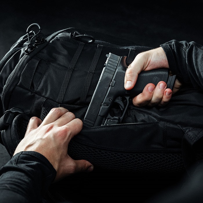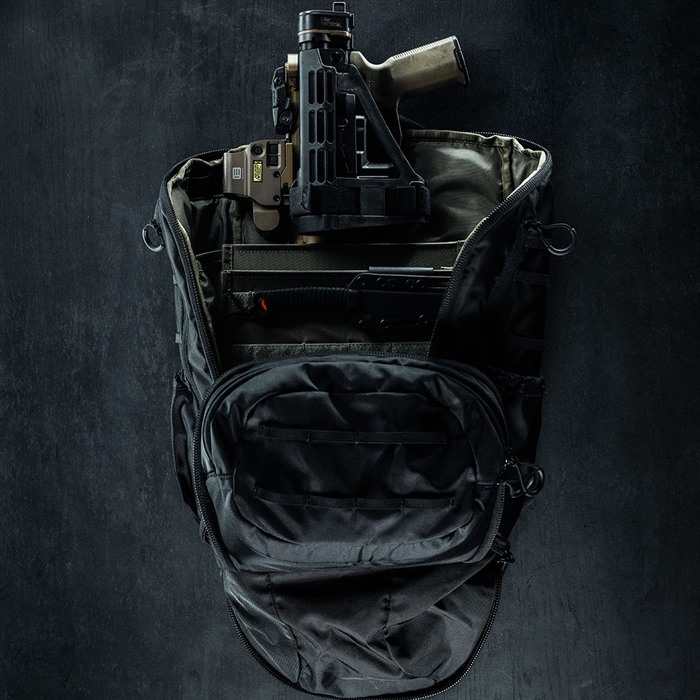 - Le tasche interne consentono di riporre e organizzare oggetti più piccoli e il webbing MOLLE-10 permette di aggiungere ulteriore equipaggiamento.